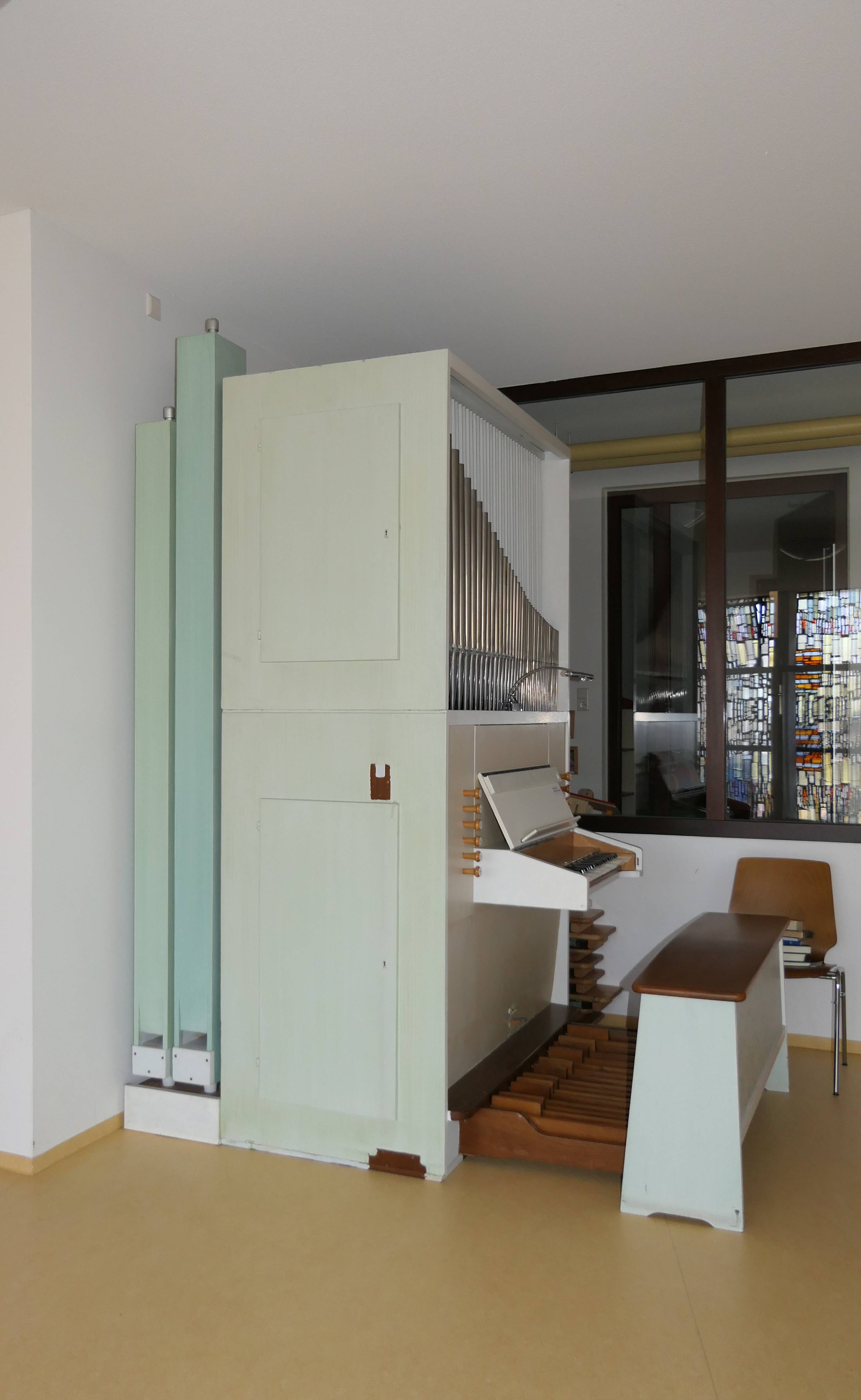 Das einmanualige Walcker-Positiv 6-1-P im Gemeindesaal des Kindergartens Springbrunnen verfügt über insgesamt 6 Klangfarben. Als Besonderheit besitzt diese Orgel eine Schleiflade mit geteilten Schleifen für alle Manualregister, sodass die Möglichkeit besteht, das Manual in 2 Hälften zu registrieren. Das c' teilt die Tastatur, sodass die 5 Register